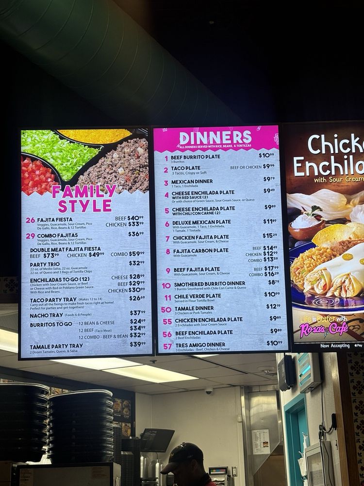 Introducing the menu at Rosa's Café & Tortilla Factory is a delightful experience for all food enthusiasts. The restaurant offers a variety of options, from Family Value Meals like Party Trio and Chile Verde to Go, to Rosa's A La Carte To Go items such as Queso, Guacamole, and Fresh, Hot Flour Tortillas. For lunch and dinner, guests can indulge in dishes like Beef Burrito Plate, Taco Plate, and Chicken Fajita Plate. Customers rave about the generous portions, flavorful Tex-Mex food, and inviting indoor and outdoor seating. The self-serve salsa bar and bogo birthday meal add to the charm of this Mexican-inspired establishment. Overall, Rosa's Café & Tortilla Factory is a must-visit for those seeking delicious food in a welcoming ambiance.